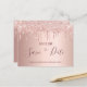 Eine gmädchenhafte und trendige Save the Date-Karte für eine Sweet Sechzehnte Geburtstagsparty. Ein feminin rosa, Rose Gold Imitate metallisch aussehend Hintergrund mit Imitaten Rose Gold Glitzer Tropfen. Vorlagen für Datum und Name/Alter 16. Dunkle Rose goldfarbene Buchstaben. Der Text: Save the Date ist mit einem großen angesagten, handgeschriebenen Stilskript geschrieben. Tipp: Wenn Sie es nicht so gewollt haben, dass es wie eine Postkarte aussieht, klicken Sie auf Anpassen, gehen Sie auf die Rückseite und entfernen Sie den Trenner und posten Sie die Briefmarke.