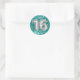 Der Hintergrund zeigt Imitate funkelnd aquamarine Konfetti chunky Stil Glitzer mit der Zahl wird mit der Zahl Imitate schimmern silberne Folie Ballon Stil Text erstellt. Ich kann dem Ballontext nach Bedarf weitere Geburtstagsnummern hinzufügen. Die luxuriösen Imitate Folie und Glitzer sind digital erstellte Bilder, die wie ein Foto gedruckt werden. Sweet 16 oder 16 Geburtstagsaufkleber.