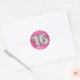 Der Hintergrund zeigt Imitate funkelnd Rose oder Hot rosa Konfetti chunky Stil Glitzer mit der Zahl wird mit der Zahl Imitate schimmern silberne Folie Ballon Stil Text erstellt. Ich kann dem Ballontext nach Bedarf weitere Geburtstagsnummern hinzufügen. Die luxuriösen Imitate Folie und Glitzer sind digital erstellte Bilder, die wie ein Foto gedruckt werden. Sweet 16 oder 16 Geburtstagsaufkleber.