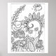 Meine schwarz-weiße Linie zeichne mit einem kleinen Frosch und Hummel mit Fantasievorstellungen Blume auf einem Plakat, das Kinder färben können.