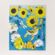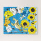 Ein Garten mit lebhaften Farben in Gelb, Blau, Schwarz, Grau und Weiß.
