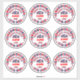 Neun Aufkleber auf einem 14 x 14 Zoll-Aufkleber. Die patriotischen Farben Rot und Blau, die Buchstaben wechseln zwischen Rot und Blau, beide mit Weiß umrissen, dann die Konturen mit den roten Mittelpunkten in Blau, das Blau in Rot. Feiern Sie Amerikas 250. Jahrestag der Unterzeichnung der Unabhängigkeitserklärung. Design ist auf anderen Aufklebern Größen, Shirts, anderen Produkten erhältlich und kann auf noch mehr Produkte übertragen werden.