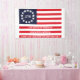 Erstellen Sie Ihr eigenes Betsy Ross Flag Banner mit optionalem benutzerdefinierten Text und diesem patriotischen 1776 Original Flag Design. Vier Vorlagen, drei auf den unteren roten Streifen und eine in der Mitte des Sternenkreises, können alle bearbeitet oder entfernt werden, wenn Sie das perfekte Fahnenbanner für die USA erstellen möchten. Von innen für ein Party oder im Freien [wählen Sie die Outdoor-Möglichkeiten] als patriotische Ausstellung für den 4. Juli, dieses Betsy Ross Fahne-Banner ist für alle und alle, die stolz sind, ein Amerikaner zu sein.