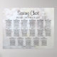 Machen Sie Ihren Hochzeitsempfang mit diesem Sitzplan schön. Es wurde als Teil unserer Hochzeitssuite White Reflections entworfen und bietet schwarzen Text auf einem Hintergrund, der die Blume und Herzen von Weiß widerspiegelt. Dieses Diagramm zeigt die Tabellenzuordnungen, damit Ihre Gäste den richtigen Tisch leicht finden können.