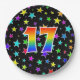 Dieses lustige, fröhliche und farbenfrohe Papier-Plattendesign zeichnet sich durch eine große Zahl "17" mit einem inspirierten Regenbogenspektrum aus. Der Hintergrund weist ein farbenfrohes Sternmuster auf. Teller wie diese können auf jemandes siebzehnte Geburtstagsparty, auf der 17. Geburtstagsfeier oder auf einer anderen siebzehnten Veranstaltung verwendet werden. [~Z0000493]