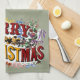 1876 Frohe Weihnachtsküche Handtuch in vielen Farben - rot, grün, blau, lila und gold.