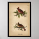 1890 Bird Print Kardinal Grosbeak Poster