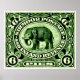 Ausgestellt in Indien von 1894 bis 1899, die Simoor Postage and Inland Revenue Briefmarke. Simoor, besser bekannt als The Princely Staaten or Native Staaten of India, war eine Region Indiens, die nicht unter britischer Herrschaft stand. Die Briefmarke Princely Staaten 6 Pies ist ein hübsches Design, das einen jungen Elefanten darstellt, den ich schwören würde und der lächelt.