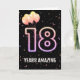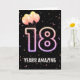 Party Ballons und Konfetti auf schwarzem Hintergrund mit dem Neon Nummer 18 zum 18. Geburtstag.