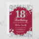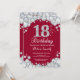 18. Geburtstag Burgundy Red und Silver Diamond Einladung