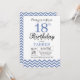 18. Geburtstag Einladung mit Blue Zickzack.Schwarz und Weiß. Erwachsener Geburtstag. Mann oder Frauen laden ein.