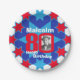Feiern Sie einen 80. Geburtstag mit diesem lustigen, blauen und blauen Jungs Stern gemusterten achtzigsten Foto und Name Einwegpapier Teller. Eine tolle Idee, um einem 80. Geburtstagsfest etwas Spaß zu machen. Reads Happy Birthday Malcolm 80, anpassen mit Ihrem eigenen Geburtstag Herren Foto und Wahl des Namens. Ideal, um einer Geburtstagsjungs-Party etwas Spaß und eine persönliche Touch hinzuzufügen. Design von Sarah Trett.