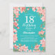 18. Geburtstag Rosa Blume Aquamariner Hintergrund Einladung