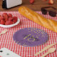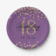 18. Geburtstags-GoldImitat-GlitzerConfetti lila Pappteller