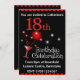 18. Geburtstags-Party Einladung mit einem Cocktailglasentwurf. Rotes u. schwarzes Farbschema.