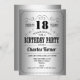18. Geburtstagsfeier Einladung. Elegantes Retro-Design mit Imitat-Folie silber und schwarz. Kann in jedem Alter angepasst werden!