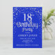 18. Geburtstagsfeier Einladung. Elegantes Design in königsblau und Imitate Glitzer Silber. Features stilvolle Skript-Schriftart und Konfetti. Nachricht, wenn du ein Alter brauchst.