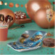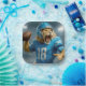 Ein Löwe, der eine Fußballausrüstung trägt, macht sich bereit, einen Fußball auf das Feld zu werfen, da helle Lampen des Stadions die Szene erhellen