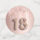 Girly und feminine Confetti für einen 18. Geburtstagstisch. Eine Rose Gold Imitate metallisch, Folie aussehend mit Imitaten Rose Gold Glitzer Tropfen. Personalisieren und fügen Sie ihren Namen/Text hinzu. Dunkle Rose goldfarbene Buchstaben. Einige Konfetti-Chips mit Namen und Datum, andere mit der Nummer 18 geschrieben mit einem Ballon Stil Schriftart, und mit dem Text Happy Birthday.