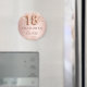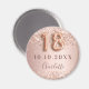 Elegant, klassisch, glamourös und mädchenhaft Save the Date Magnet für eine 18. Geburtstagsparty. Rose Gold und Farbverlauf. Dekoriert mit Rose Gold, Imitat Glitzer, Glitzern. Personalisieren und einen Namen hinzufügen. Der Name ist mit einem modernen, dunklen Rose gefärbten Handschrift geschrieben. Nummer 18 wird mit einem Schriftart im Ballonstil geschrieben.
