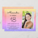18. Girl's Geburtstagsparty Elegante Imitate Sparkle und Glitzer Rosa, Gold und Lila Ombre Pastel Geburtstag Einladungen sind perfekt für eine rosa und Lila Geburtstagsparty. Diese Foto- oder Bildeinladungen sind perfekt für eine Frau, die achtzehn Geburtstagsparty macht. Sie können die Einladungskarte aktualisieren, um Ihre eigenen Foto-, Namen- und Geburtstagsdaten einzufügen.