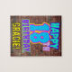 This fun birthday puzzle design feature the message "HAPPY 18TH BIRTHDAY", having a colorful, vibrant, graffiti and urban street art art inspirred look, addiert to a custom recipient name. Die Background Feature hat pattern inspirred by the look of a brick wall. Zum Spaß: customizable birthday puzzle like this might be a fun way to deliver a birthday greeting message to somebody who is celebrating their eighteenth birthday. [~ Z0000532]