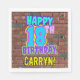 Dieses lustige Geburtstagsthema Papier Serviette Design beinhaltet die Nachricht "HAPPY 18TH BIRTHDAY", mit einem lebendigen, farbenfrohen, Graffiti und städtischen Straßenkunst inspirierte Erscheinung, zusammen mit einem personalisierten Empfängernamen. Der Hintergrund weist ein Muster auf, das durch das Aussehen einer Ziegelwand inspiriert wird. Lustige, lebendige, personalisierte Papierservietten wie diese können bei der Ausrichtung einer Geburtstagsfeier für jemanden zum 18. Geburtstag verwendet werden. [~Z0000534]