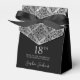 This elegant 18th Birthday Silver Damask Thank You favor box with shimmering silver faux foil, the birthday girl's name in a trendy script font, and tied with an elegant black bow would be perfect for your event. It would be great for a candy station, on a thank you gift table, or at each place setting with a favor. Be sure you order enough for all your guests.