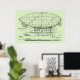 1912 Schiff Luftschiff Ballon Patentkunst Zeichnen Poster