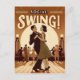 • Bring the charm of the swing era to life with this vintage-inspired Social Swing postcard. The design showcases an elegantly dressed couple dancing in a classic 1920s-style community center, surrounded by onlookers enjoying the music.