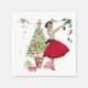1950 Weihnachtsfrau mit Weihnachtsbaum Serviette