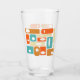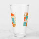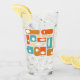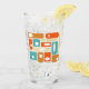 Add a pop of color to your kitchen with this fabulous retro mid century glass tumbler. It features squares and rectangles in the bright and bold colors of turquoise blue, two shades of orange, and cream.