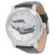 Uhr, Klassische Damenuhr mit schwarzen Lederarmband