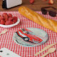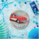 1957 rote Corvette auf Karte Pensionierung Pappteller