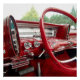 1961 Dodge Lancet Armaturenbrett mit futuristischem Lenkrad und Drucktastenübertragung. Dieses glorreiche Rot-Interieur bringt die Erinnerungen der Oldtimer der 60er Jahre zurück.