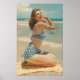 1964 Postcard pinup girl ~ Beach Scene Poster