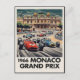 • This vintage travel postcard captures the excitement of the Monaco Grand Prix. The digital illustration features a classic 1960s design, perfect for a racing enthusiast.