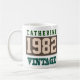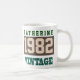 Geboren 1982. Feiern zum Geburtstag. Das Design erscheint auf beiden Seiten der Tasse.