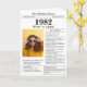 Begrüßen Sie jemanden, der 1982 geboren war, mit dieser einzigartigen Geburtstagskarte im Zeitungsstil, mit einem Foto des Empfängers und einer Sammlung von lustigen Fakten und Weltnachrichten aus dem Geburtsjahr. Werde kreativ und erschaffe einen personalisierten Sake. Entworfen, um eine Vintage Zeitung im klassischen Schwarz-Weiß-Stil zu ähneln. Eine niedliche und lustige Art, die 80er Jahre zu feiern!