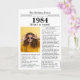 Begrüßen Sie den Geburtstag mit dieser einzigartigen Geburtstagskarte im Zeitungsstil, mit einem Foto des Empfängers und einer Sammlung von lustigen Fakten und Weltnachrichten aus dem Jahr 1984. Werde kreativ und erschaffe einen personalisierten Sake. Entworfen, um eine Vintage Zeitung im klassischen Schwarz-Weiß-Stil zu ähneln. Eine niedliche und lustige Art, die 80er Jahre zu feiern!