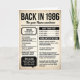 1986 Back in the Day, 40th Birthday, Fun Facts Karte