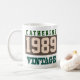 Geboren 1989. Feiern zum Geburtstag. Das Design erscheint auf beiden Seiten der Tasse.