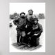 Foto aus dem 19. Jahrhundert, auf dem drei lächelnde Fischer an einer Anlegestelle am Ufer des Wassers dargestellt sind.