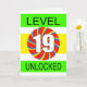 19. Geburtstagskarte für einen Videospieler. Jeder Computerspieler Liebe diese Karte. Mit dem Slogan Level 19 entsperrt, wird dies jedem, der Computerspiele spielt, ein großes Grinsen bescheren.