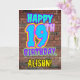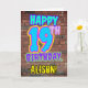 An der Vorderseite dieses lustigen Geburtstagskarten-Designs steht die Meldung "HAPPY 19TH BIRTHDAY" mit einem lebendigen, bunten, graffiti-inspirierten Look und einem personalisierten Empfängernamen. Der Hintergrund der Vorderseite weist ein inspiriertes Ziegelmauermuster auf. Die Innenseite verfügt über eine benutzerdefinierte Geburtstagsgrüßbotschaft oder könnte gelöscht und leer verlassen werden, wenn eine Nachricht von Hand geschrieben werden soll. Eine lustige, personalisierte Geburtstagskarte wie diese könnte dazu verwendet werden, jemandes neunzehnten Geburtstag zu feiern. [~Z0000531]