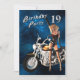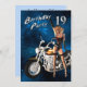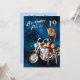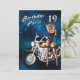 Ein schönes Bikermädchen zeigt auf Ihre Party Einladung. Eine unwiderstehliche Einladung für Männer jeden Alters.