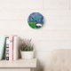 Eine originelle Aquarellmalerei von Anne Ormsby schmückt diese farbenfrohe Uhr.