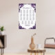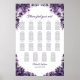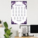 Helfen Sie Ihren Gästen mit dieser lila Blumenkarte, ihren Tisch zu finden. Es ist für eine Hochzeit mit 19 Tischen und bis zu 190 Personen geeignet.