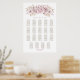 Helfen Sie Ihren Gästen, ihren Tisch mit diesem rosa Blumenstempel zu finden. Es ist für eine Hochzeit mit 19 Tischen und 190 Gästen geeignet.