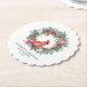 Elegant watercolor red cardinal framed by a classic winter pine wreath. Red and white flowers, berries and pinecones add to the greenery. Three lines of text let you customize your party supplies.